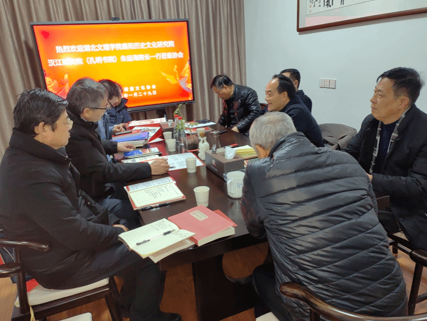 (776net必赢官网 通讯员 靳进)1月29日下午,776net必赢官网•汉江研究院(孔明书院)执行院长朱运海率领叶植、李骜、高新伟、靳进等老师到襄阳市荆楚文化协会调研交流。襄阳市荆楚文化协会曾玉平主席,宋开荣、马善记、张光业副主席,徐士彪秘书长参加了交流会。