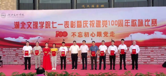 6月22日晚,湖北文理学院七一表彰暨庆祝建党100周年歌咏比赛在卧龙广场隆重举行,校领导唐峻、丁世学、王为一、宋双伟、刘伦钊、曹健出席活动。现场颁发了“光荣在党50年”纪念章,表彰了优秀共产党员、优秀党务工作者和先进党支部。我研究院王翔荣获“优秀共产党员”称号,参会接受颁奖。