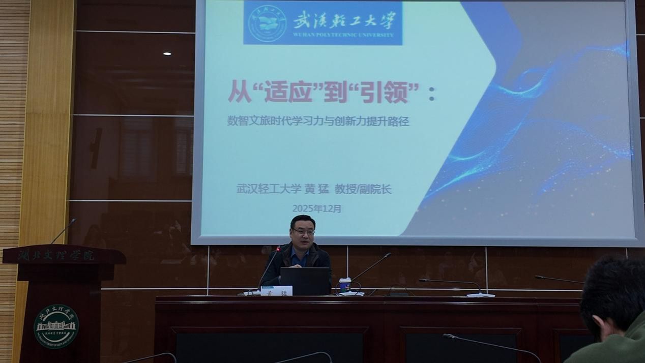 武汉轻工大学管理学院副院长、工商管理学科旅游管理方向学术带头人黄猛教授在题为《从“适应”到“引领”:数智文旅时代学习力与创新力提升路径》学术报告。报告指出文旅产业正从信息化、网络化向数智化阶段深度演进,仅“适应”数字化已不足以构建可持续竞争优势,必须转向以学习力与创新力为双引擎的主动“引领”模式。研究者应从“知识接收者”向“创新引领者”转型,并需具备批判性洞察、跨学科整合、场景构建、价值与伦理守护等四项关键能力。