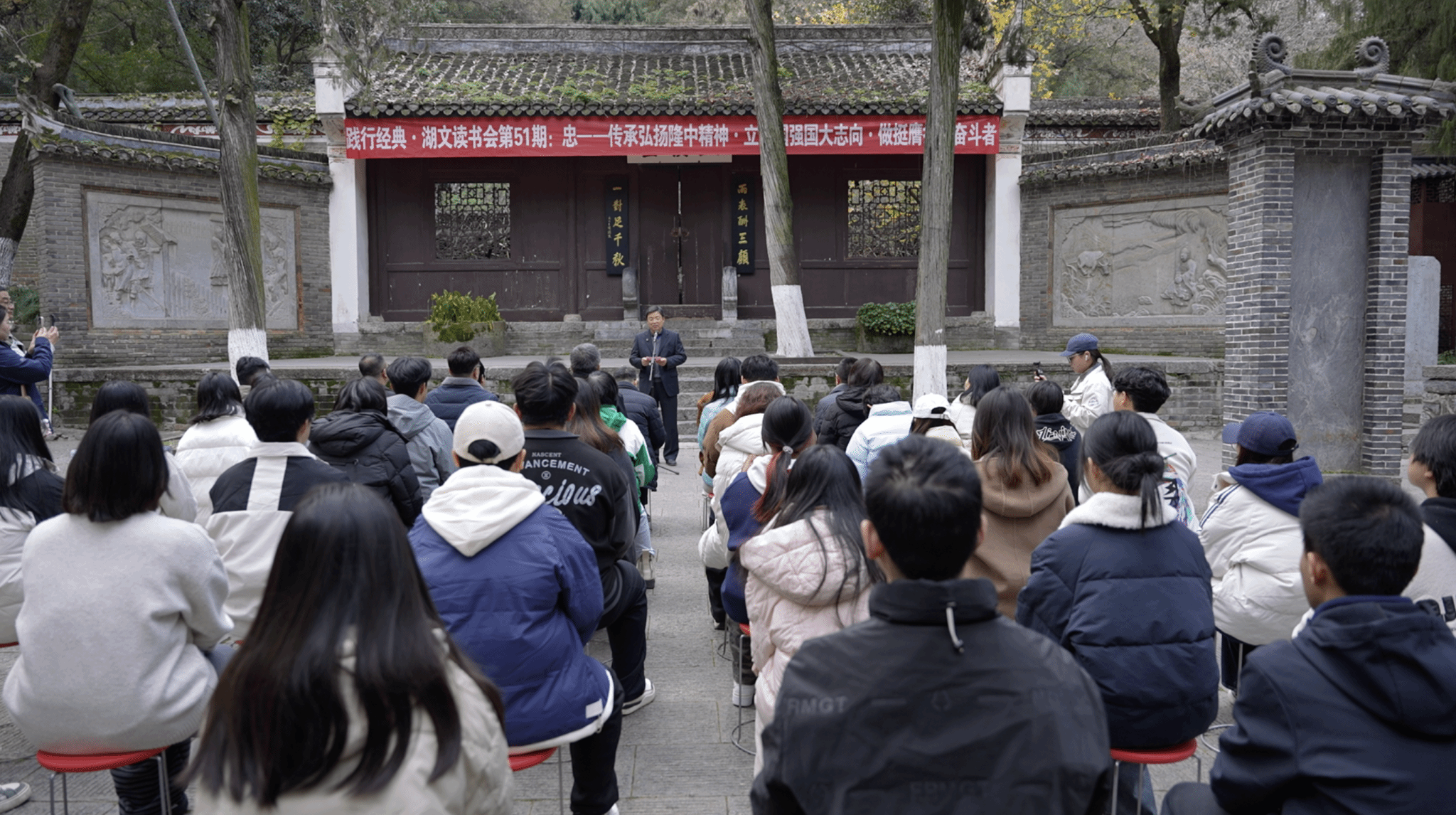 (通讯员 卜润慧 李典鹏)12月4日,学校联合湖北襄阳隆中文化园投资有限公司,在古隆中景区举办第五十一期“湖文读书会”。本次活动以“传承弘扬隆中精神・立报国强国大志向・做挺膺担当奋斗者”为主题,将读书会课堂移至历史现场,通过实地、实景、实情的沉浸式教学,引导师生深刻感悟以“忠”为核心的中华传统美德。学校党委书记吴超仲、副校长秦军荣、党委副书记王瑶珺,湖北襄阳隆中文化园投资有限公司董事长罗圆等出席活动。